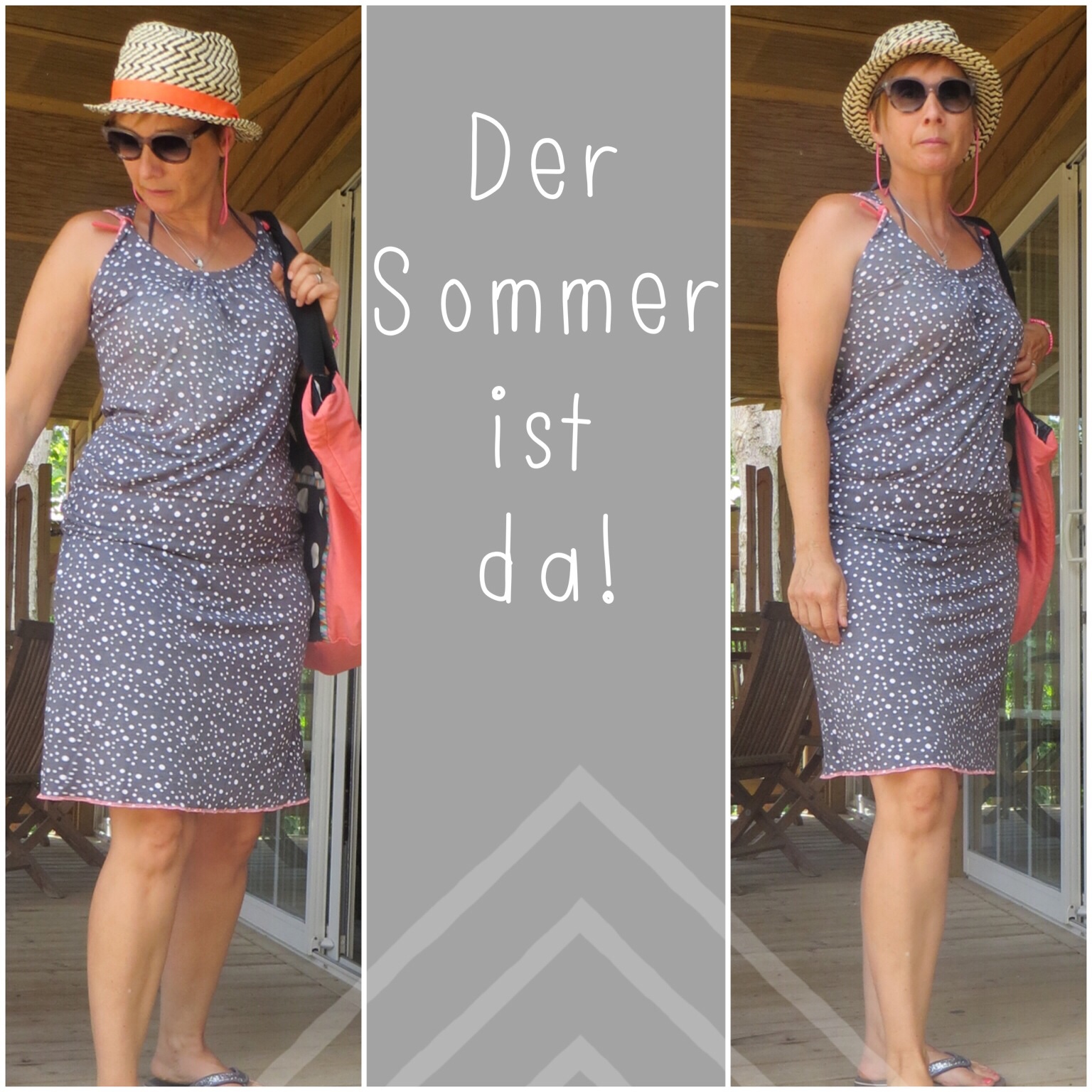 Ihr habt bestimmt schon gemerkt, dass ich Streifen liebe. Am liebsten in Schwarz-Weiß. Aber auch Punkte mag ich sehr gerne (bis auf Polka Dots, die habe ich inzwischen über). Aber diesen Stoff, den ich auf dem Stoffmarkt in Stuttgart entdeckt habe, finde ich besonders, weil die Pünktchen unterschiedlich groß und ungleichmäßig auf dem Grau verteilt sind. Ich habe mir daraus aus einem meiner Lieblingschnitte, Shelly von Farbenmix, ein Top genäht. Dazu habe ich die Arme weggelassen und den Rand einfach nur mit der Overlockmaschine mit einem ziemlich knalligen Garn in leuchtendem Koralle versäubert. Als kleine Besonderheit habe ich ein korallfarbenes Jerseybändchen an die Armausschnitte geknotet. Das Shirt gibt es auch noch mit kurzen Armen, das zeige ich euch bei Gelegenheit.