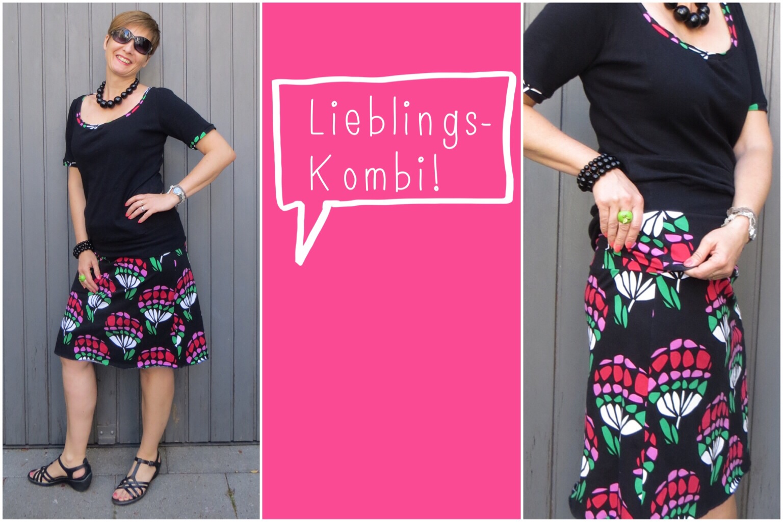 Flower-Power macht Sommerlaune! Hier meine diesjährige Lieblingskombination für die Sommersaison: Den Rock aus der Simplicity habt ihr in meinem Beitrag vom 11.07.2014 schon in Grau mit Punkten gesehen. Genauso auch das Shirt Shelly. Dieser Schnitt macht einfach Spaß, geht schnell und ist super vielseitig. Außerdem finde ich die Form für weibliche Formen sehr schmeichelhaft.