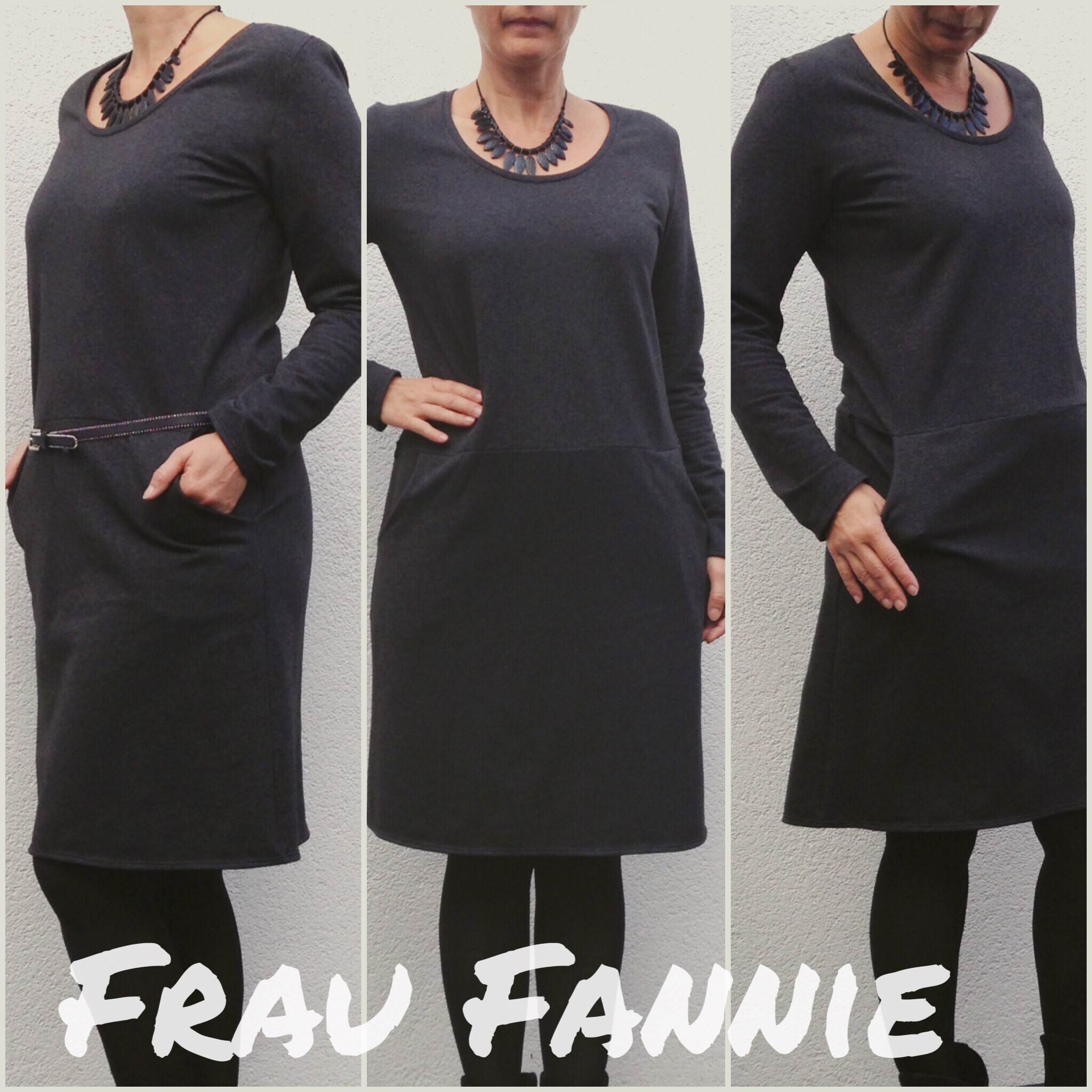 ich bin für den Herbst gerüstet: Mit meinem neuen Sweat-Kleid Frau Fannie von Schnittreif können die kühlen Tage jetzt kommen. Der Schnitt ist wirklich ganz einfach und das Kleid lässt sich schnell machen. Nur die Taschen dauern ein bisschen, aber die Mühe lohnt sich. Ich habe einen warmen, aber nicht zu dicken SweaFrau Fannie Kleid Collage 2tstoff verwendet, der innen schön kuschelig ist. Allerdings ist das Anthrazit nicht besonders fotogen. Ich hoffe, ihr erkennt trotzdem etwas.
