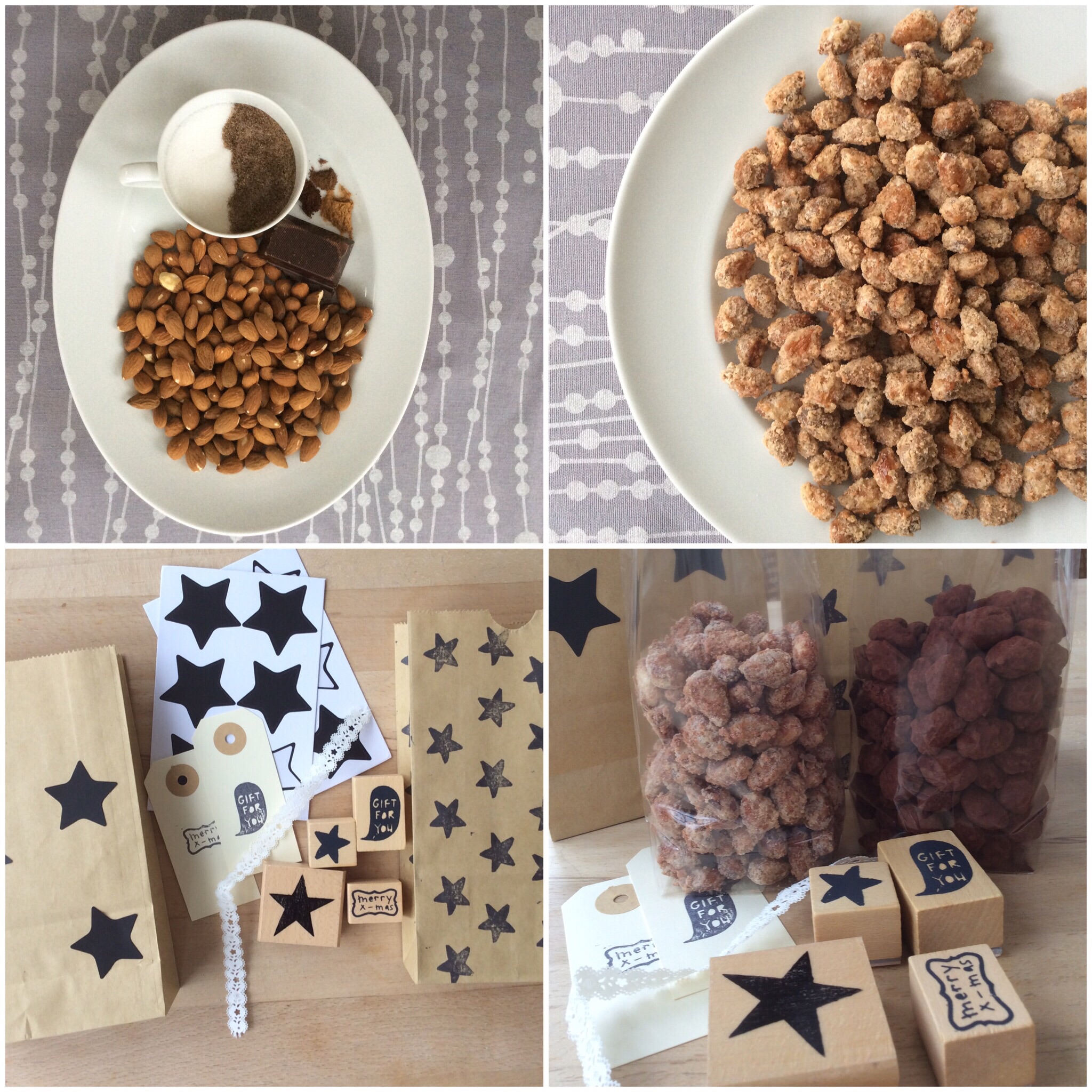 Nach ein paar Tagen überlegen und stöbern in Rezepten habe ich mich für gebrannte Mandeln, einmal mit und einmal ohne Schokoglasur, entschieden. Das wollte ich schon immer mal probieren, kam aber nie dazu. Hier seht ihr das Entstehen und das Endergebnis. Wer die Mandeln probieren möchte – unten findet ihr das Rezept.