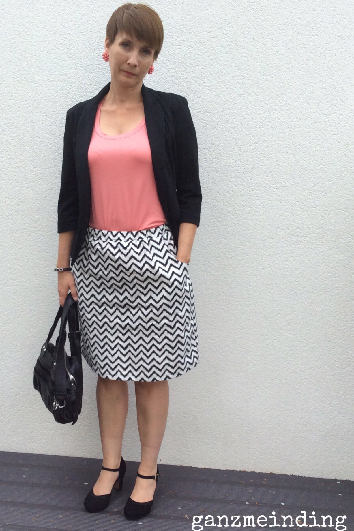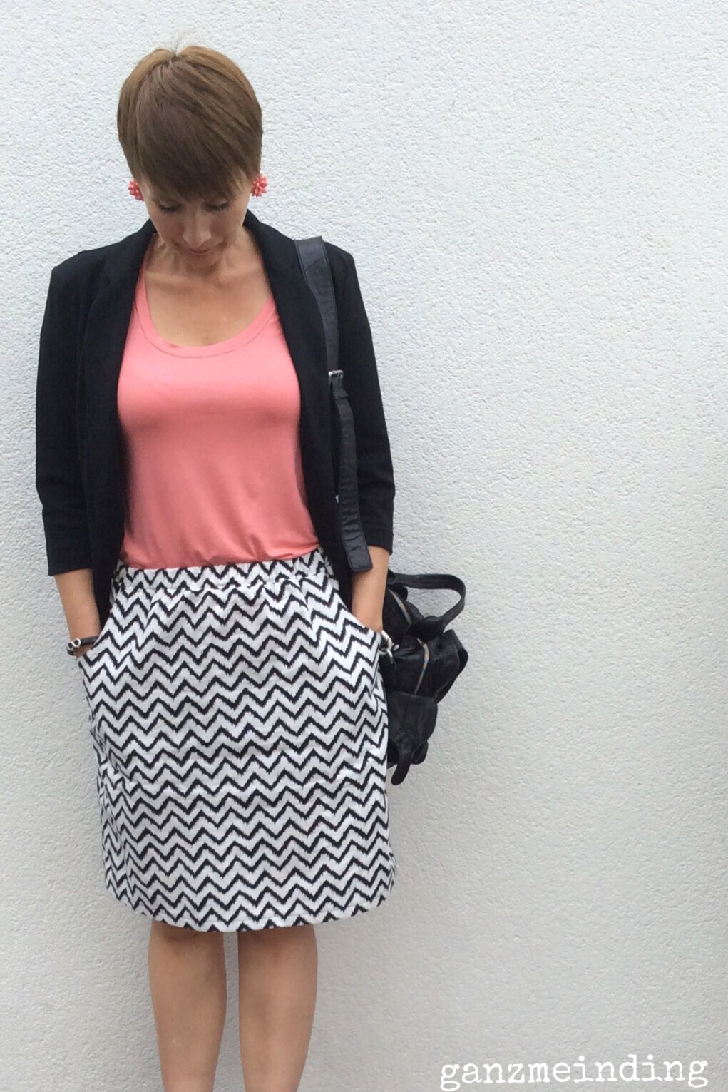 6. da hast du dir aber ein wunderbares outfit gezaubert. ich liebe coralle! und deine ohrringe! perfekt! und der chevronrock ist einfach genial!