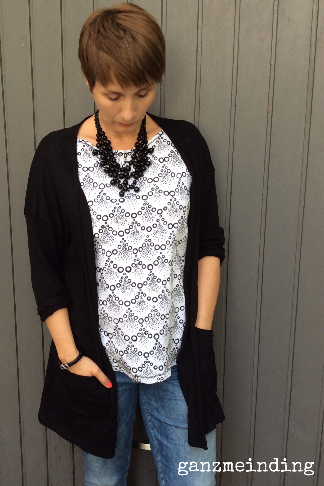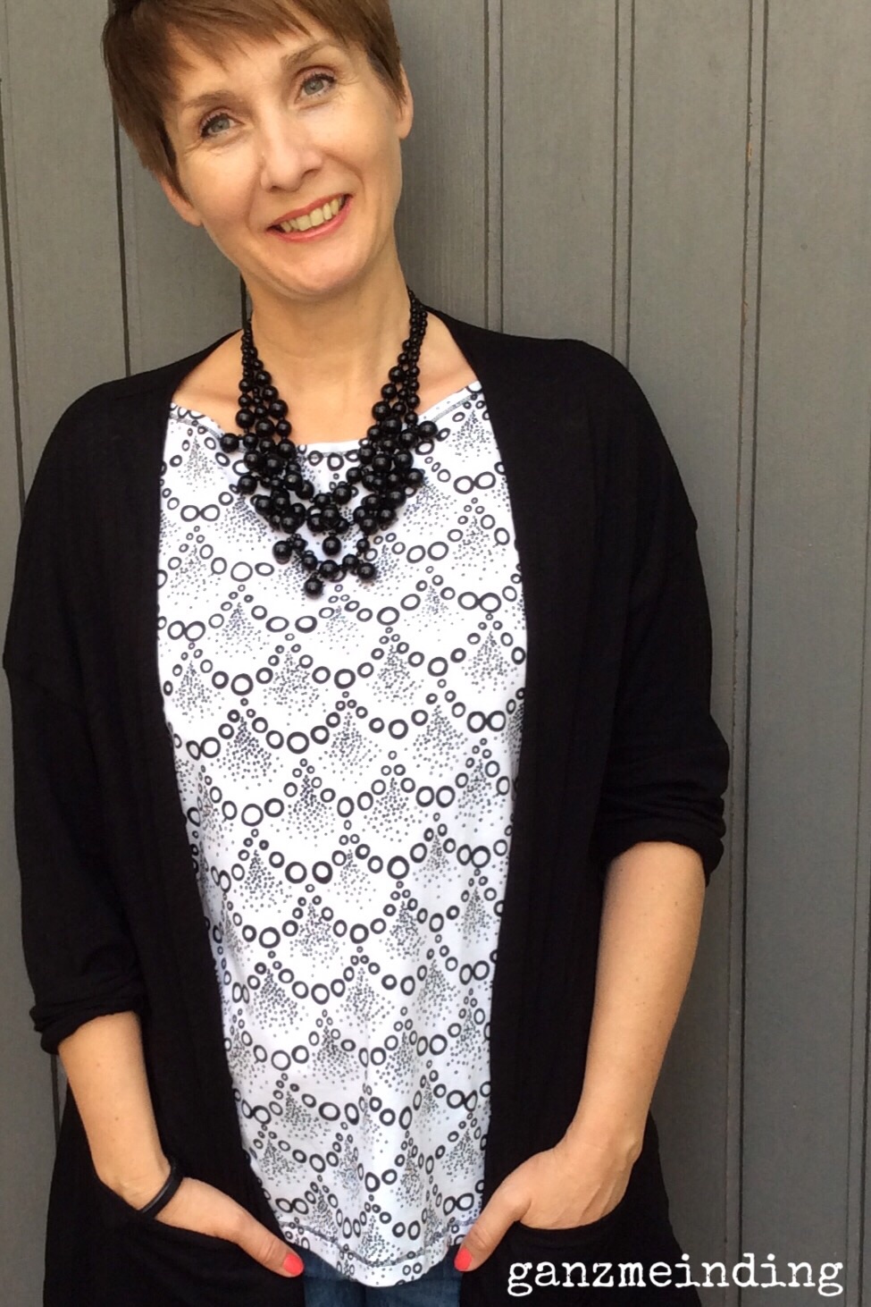 Nachdem ich im Netz einige sehr hübsche Lizzy-Tops gesehen hatte, habe ich mir den Schnitt auch zugelegt und ihn in Schwarz-Weiß umgesetzt.