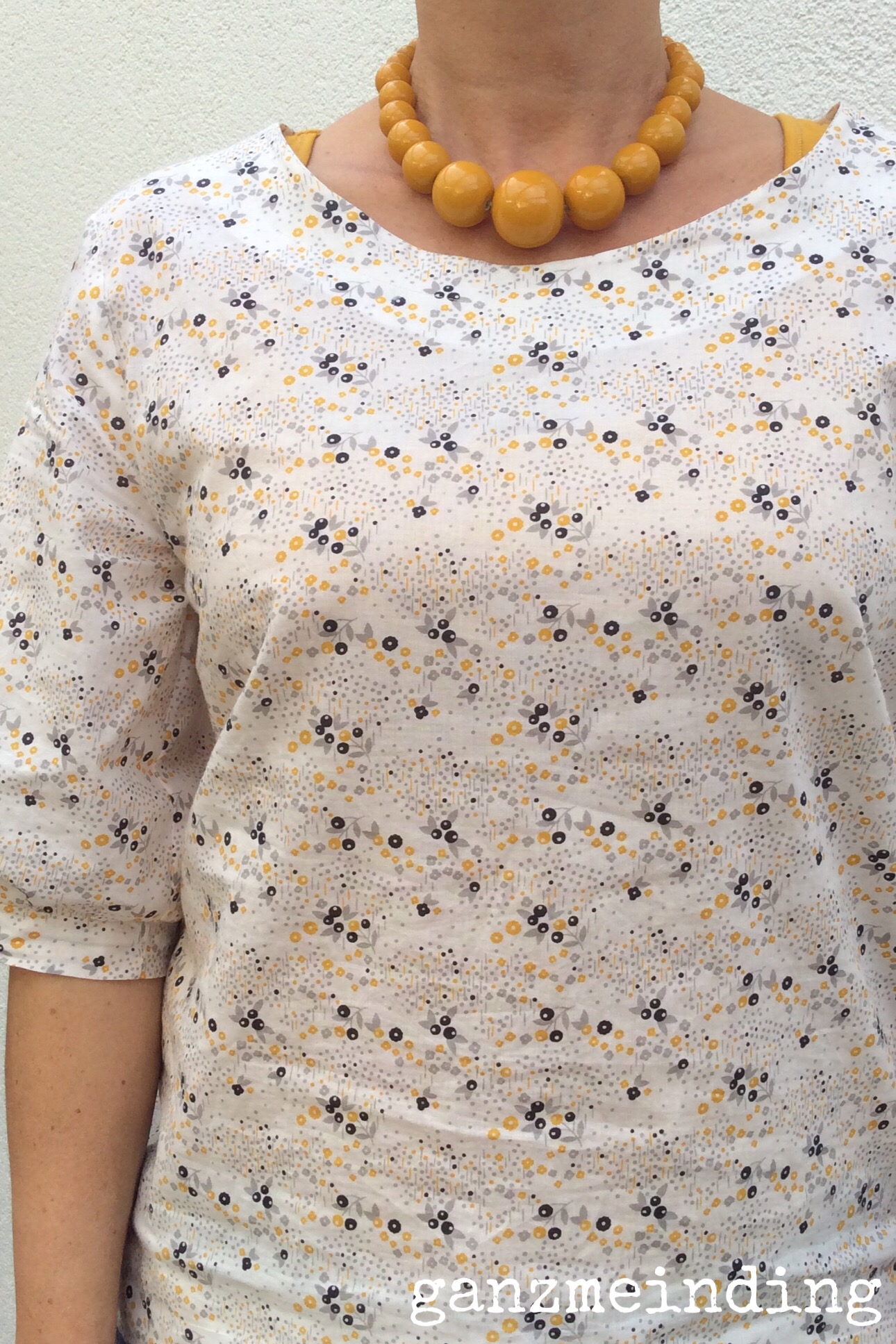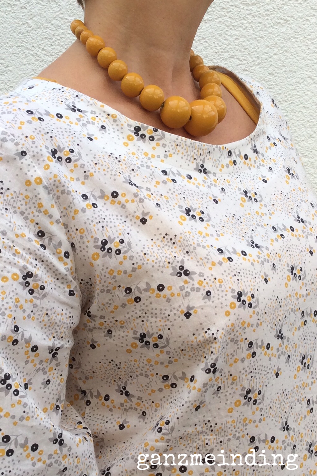 6. Eine wunderschöne Bluse! Dein Outfit ist toll und steht dir sehr gut. Ich mag es, wie du deine Nähprojekte gleich zu einem kompletten Outfit mit Accessoires machst. Und den Gedanken sie als Basic zu nehmen und zu kombinieren finde ich sehr gut…sie ist schlicht vom Schnitt, aber der Stoff ist der i-Punkt. Die Blümchen richtig süß. Ich mag senfgelb auch sehr gerne, aber leider steht es mir nicht – vielleicht ist dein verwendeter Stoff ja endlich mal der richtige für mich mit dieser Farbe.