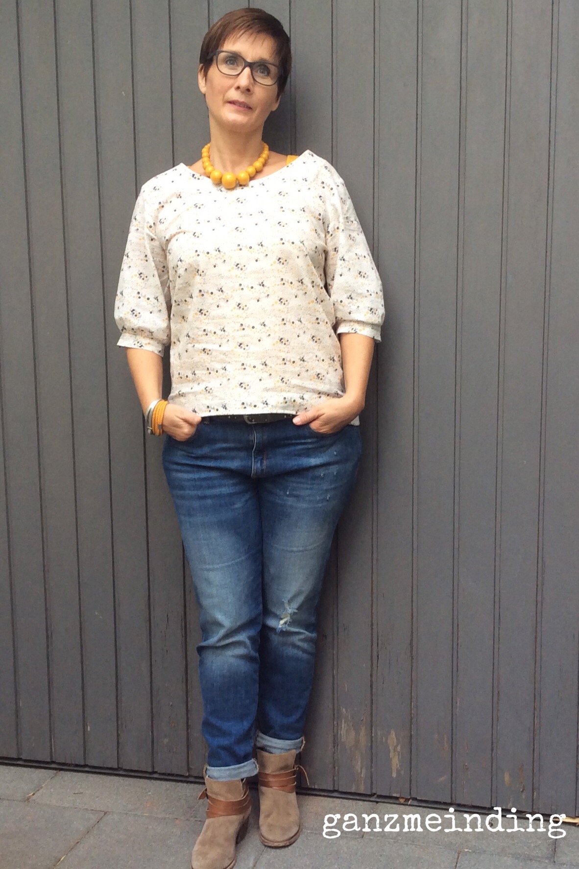 Ich liebe meine neue Bluse! Lässig sieht sie zu Jeans aus, egal, ob reingesteckt oder drüber getragen. Und auch zu einem Rock passt sie gut. Das zeige ich euch vielleicht demnächst noch, denn ein passender Rock ist schon entstanden.