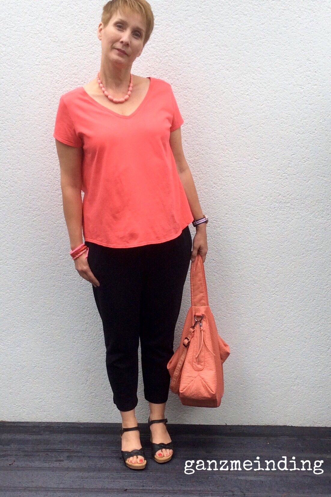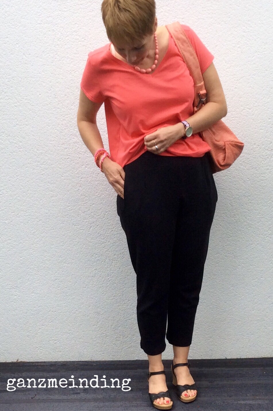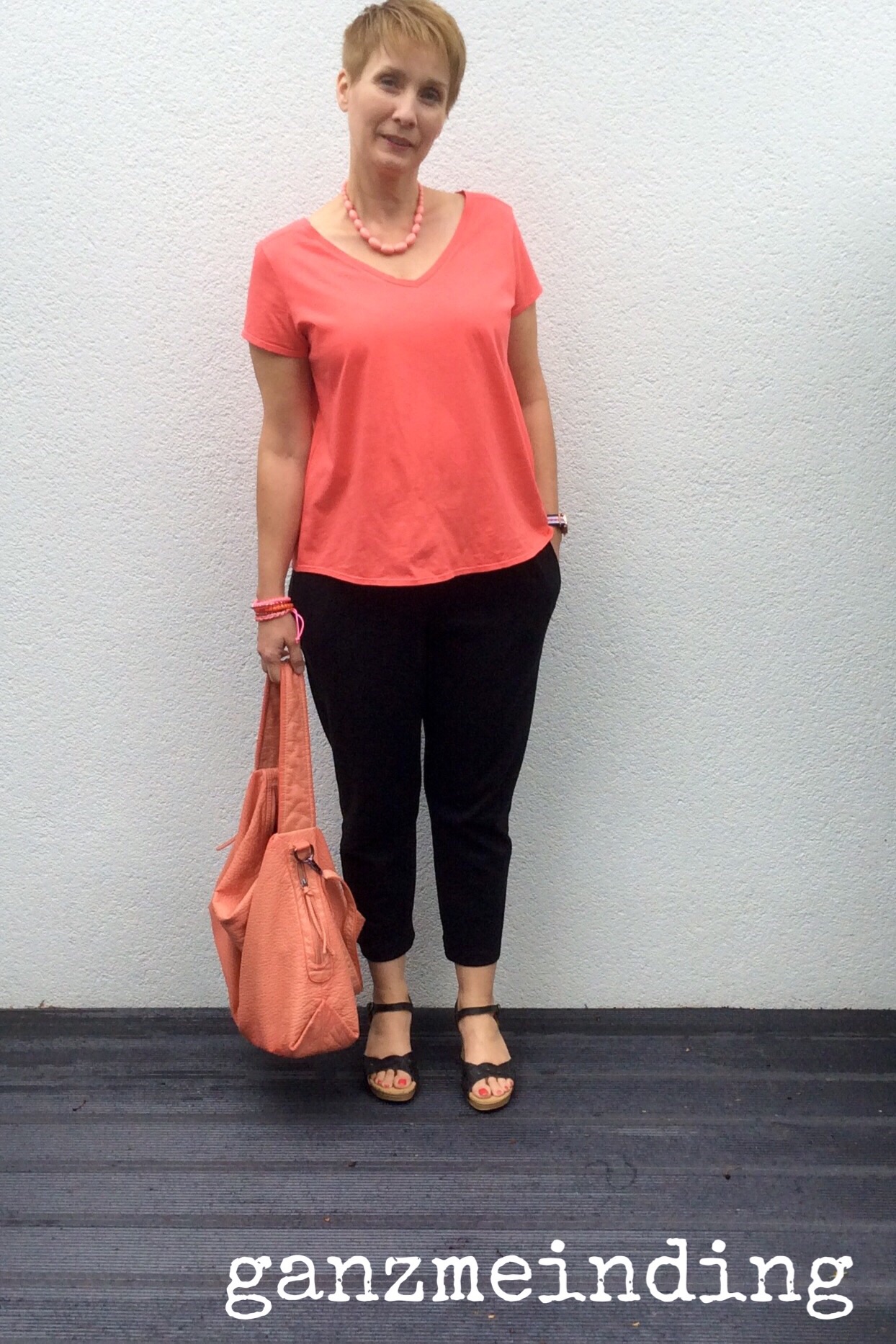 Ich hab einen korallfarbenen Jersey verwendet, den ich mir mal als günstigen Coupon gekauft habe. Passt perfekt zur Tasche, habt ihr’s bemerkt?
