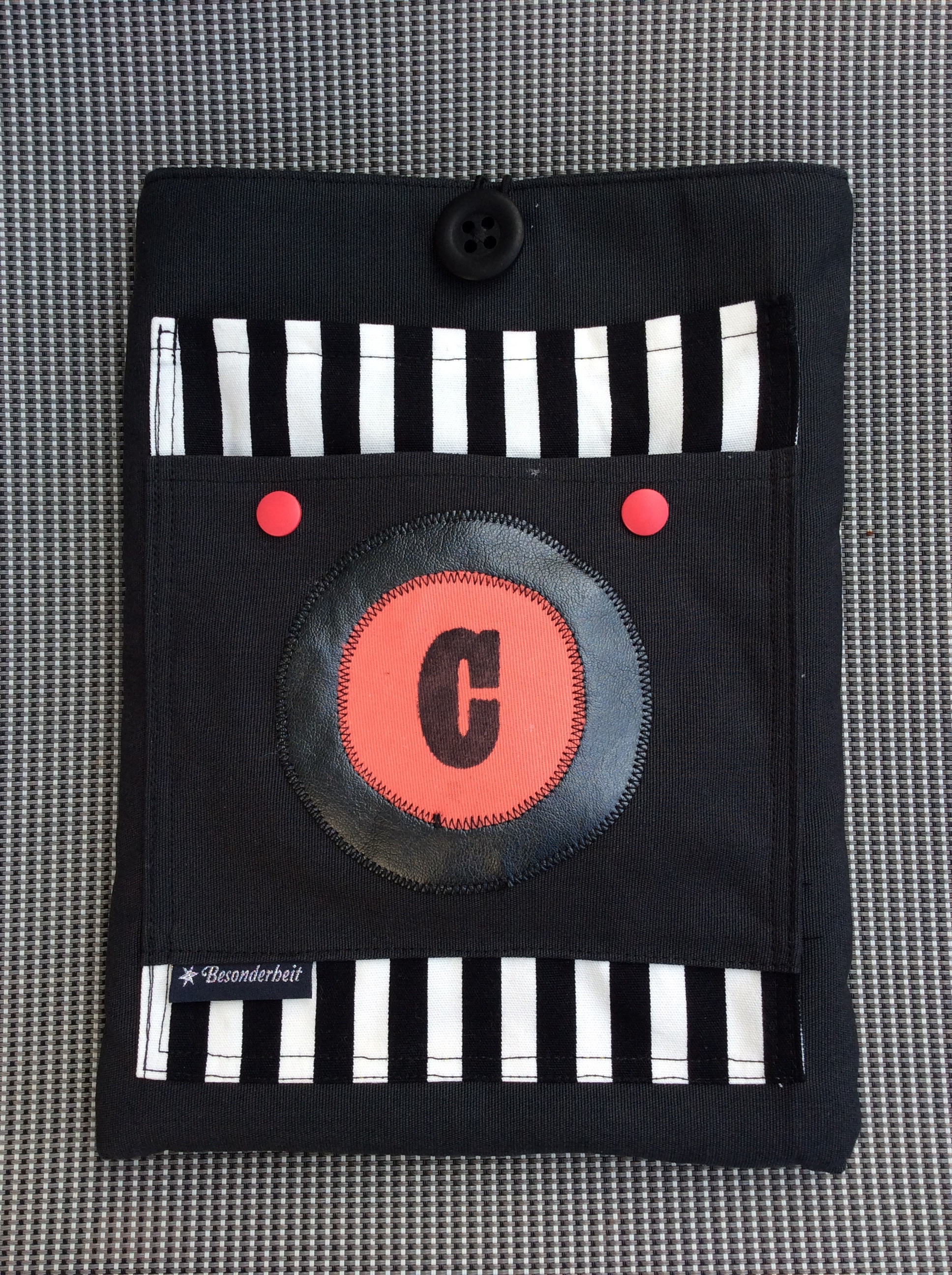 Praktisch finde ich das Reißverschlussfach auf der Rückseite. In diesem verstaue ich immer mein Handy, damit es schnell griffbereit ist. Wie ihr seht, habe ich auch hier in der unteren Ecke eine kleine Stickerei angebracht.