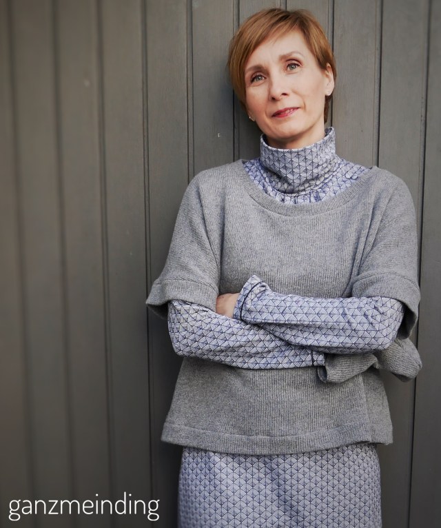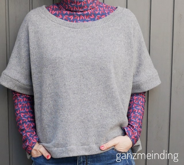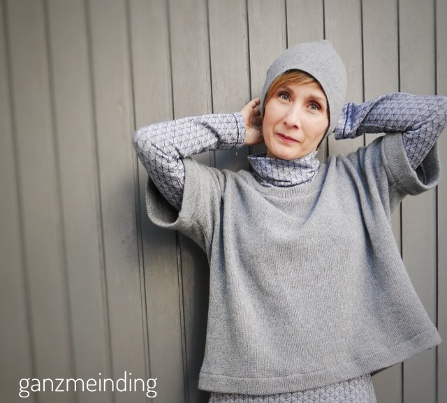 Dazu passt dann noch das Jäcken aus „Isa„, einem apricot und grau gestreiften Baumwolljersey. Der Schnitt ist der Lisbon Cardigan, den ihr hier bei Nähconnection auf Deutsch bekommt.
