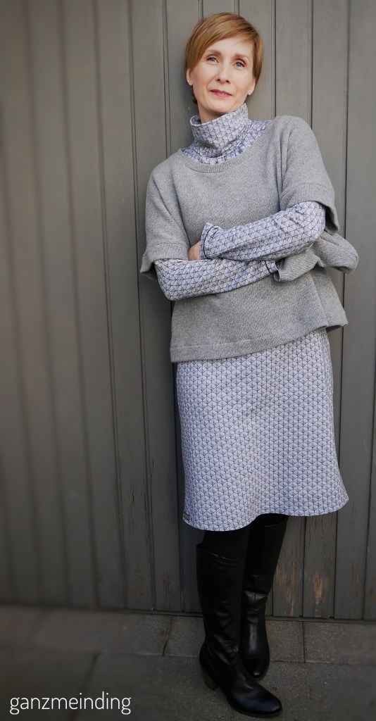 Hier kommen also Rock mit passendem Oberteil und Tuch: