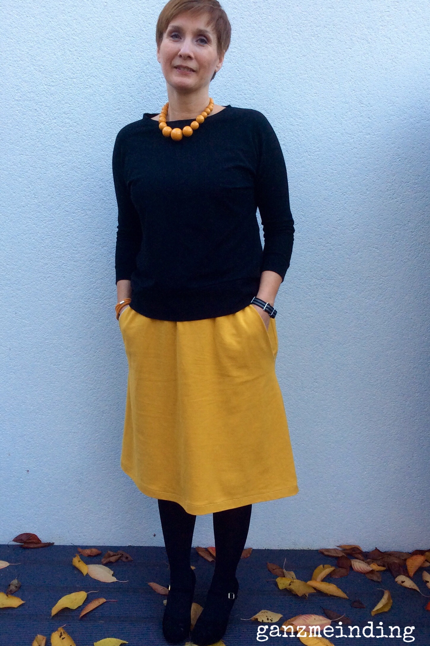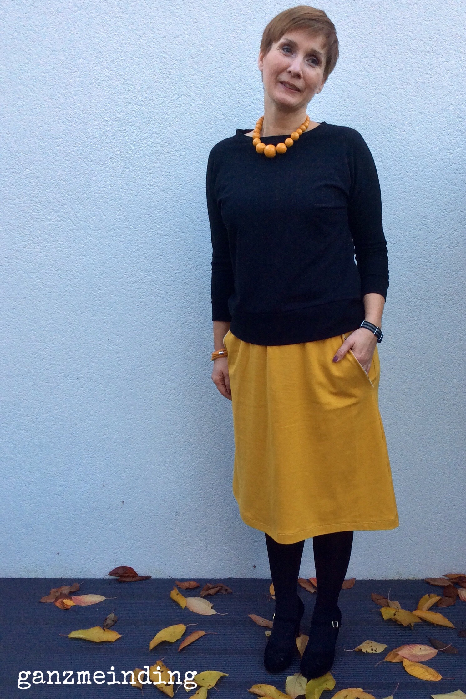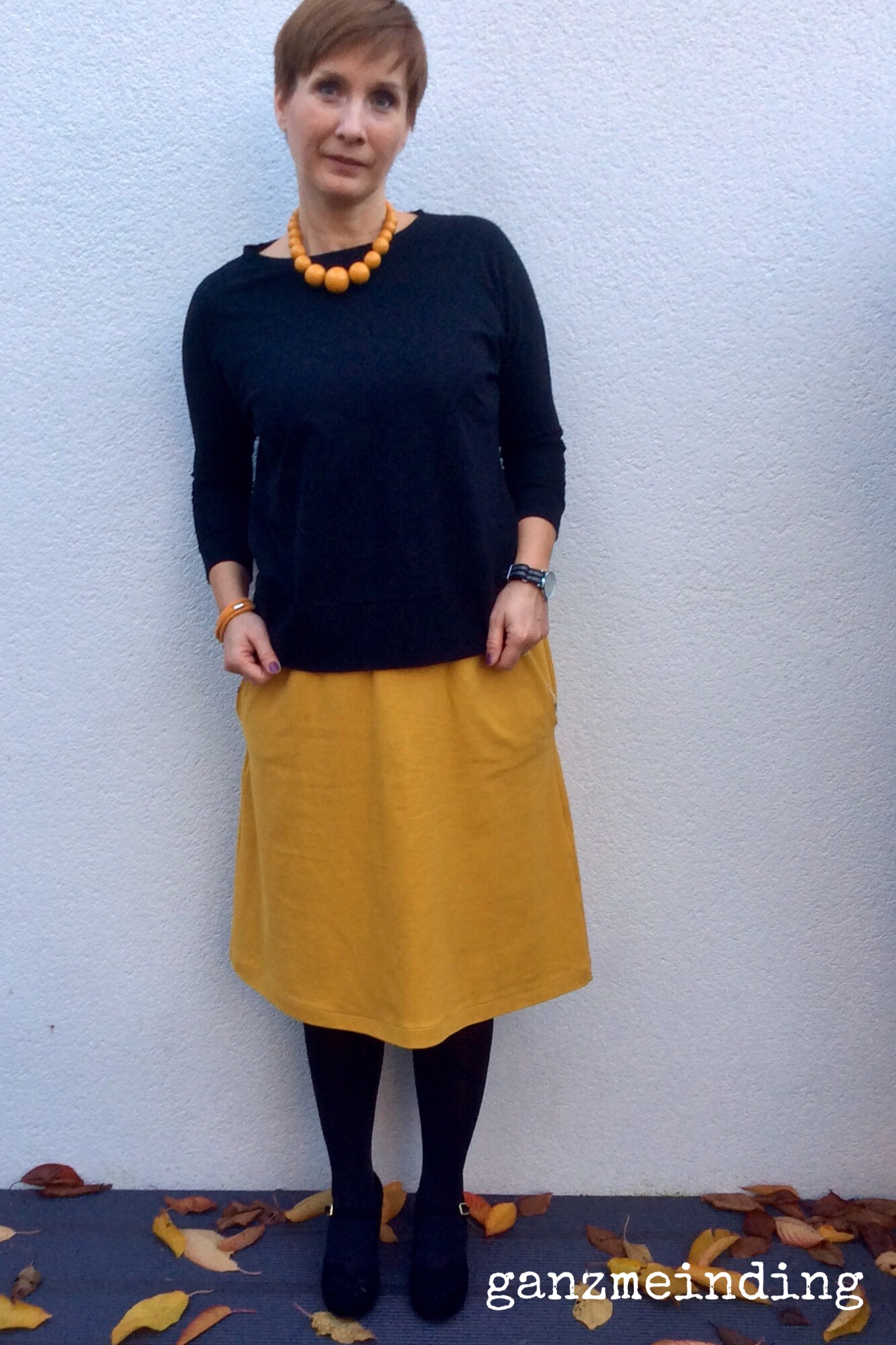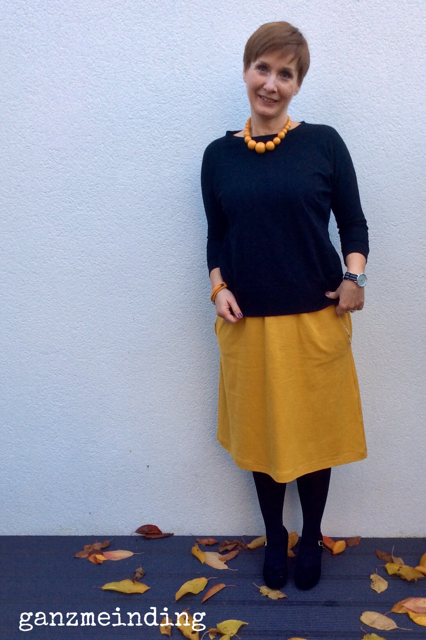 Mein Shirt, das ich mir vor Ewigkeiten genäht habe, passt zufälligerweise perfekt zum Stoff. Glück gehabt, so musste ich mir kein neues nähen.